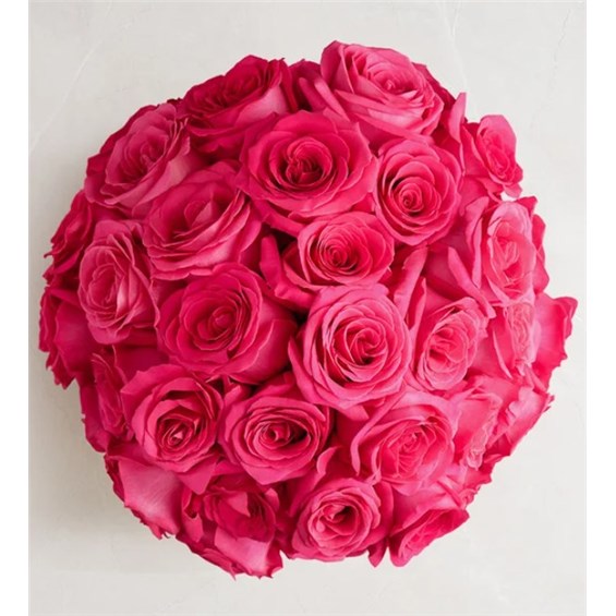 Eye-catching hot pink roses with a fun, modern vibe. Our vibrant blooms are tightly gathered into a chic dome shape with lush greenery by local florists, then hand-delivered to someone special with style and sentiment.